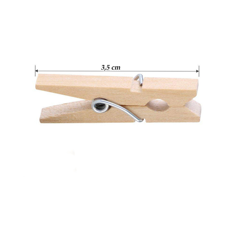 Mollette decorative in legno da 3.5 cm disponibili in legno chiaro o colorate ideali per appendere foto, memo e ricordi.