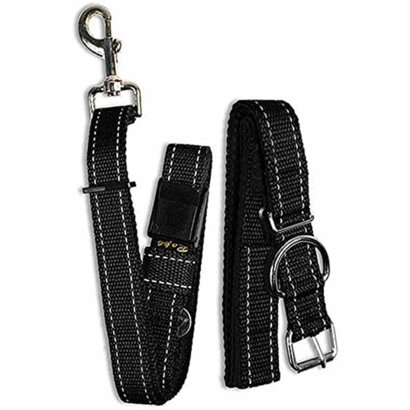 Utile guinzaglio con attacco per cintura di sicurezza ideale per chi ama viaggiare con il proprio amico a 4 zampe. La confezione include un collare taglia grande ed un guinzaglio dotato di gancio per cintura di sicurezza per poter trasportare il vostro cane in macchina. La lunghezza del guinzaglio si può facilmente regolare tramite la clip da un minimo di 80 ad un massimo di 120 cm.