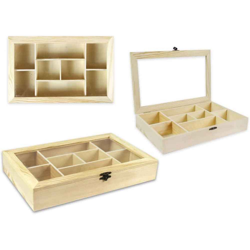 Bacheca in legno 8 posti ideale da usare come vetrinetta per minuterie e piccoli ricordi. Grazie alla porticina con vetro e chiusura potrete esporre i vostri ninnoli senza correre il rischio che si possano rompere o impolverare. Il colore naturale poi la rende perfetta anche per essere decorata e per lavori di decoupage , così da personalizzarla. Le pratiche misure, 30 x 19 x 5 cm, la rendono perfetta per qualunque ambiente.