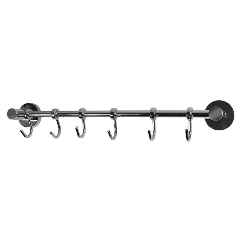 Innovativo appendino in acciaio con cinque ganci da fissare a muro con le viti incluse o senza viti con colla mastice(inclusa). Ideale per appendere asciugamani e accappatoi evitando ingombri.