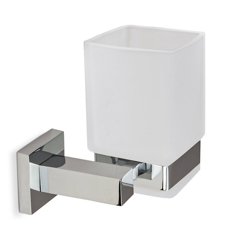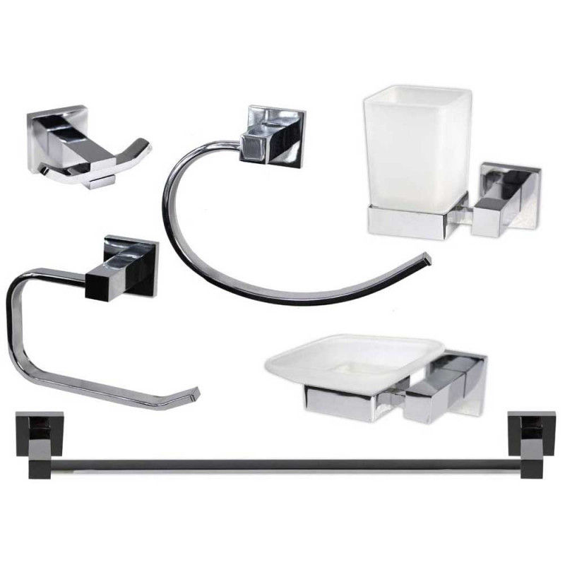 Set Bagno Moderno Quadrato in Acciaio Cromato e Vetro Satinato Opaco 6 Pezzi Accessori arredo Bagno