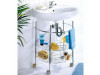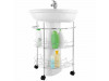 Pratico carrello da bagno dotato con due ampi ripiani e tre rotelle. Ideale per riporre prodotti per l’igiene, spazzole, asciugamani ecc. La sua forma arrotondata fa sì che possa essere inserito perfettamente sotto il lavabo del bagno.