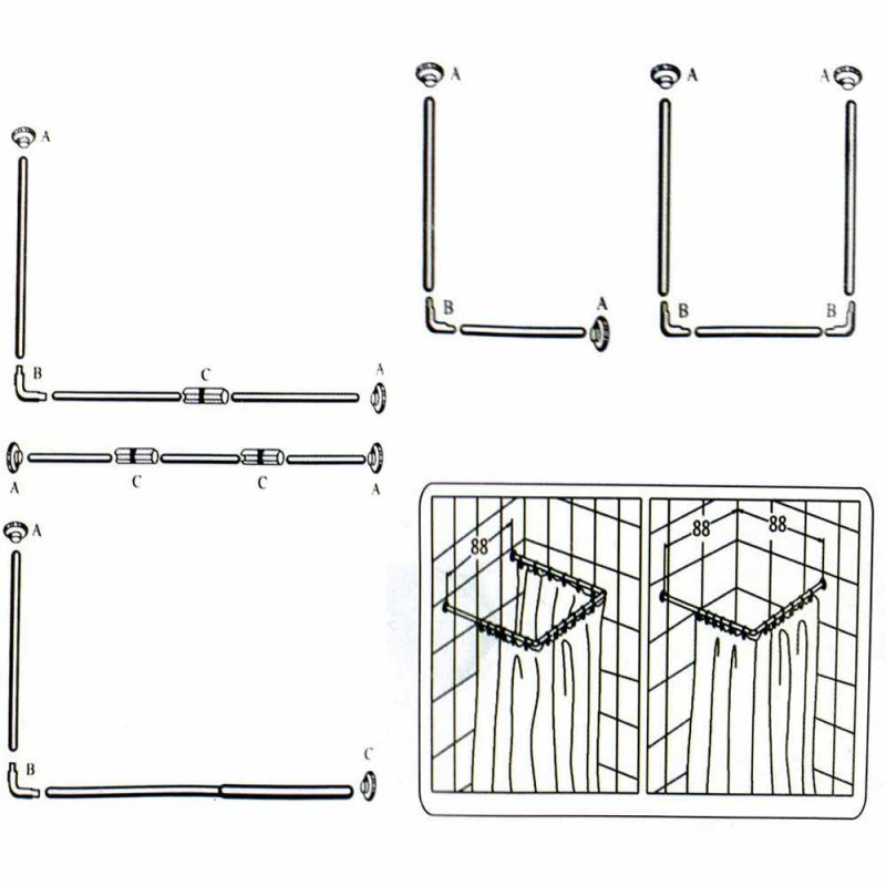 Bastone per tenda da doccia universale con aste lunghe 80 cm con possibilità di regolare la lunghezza e di gestire le aste grazie agli agganci in base alle vostre necessità. Potrete decidere la forma del bastone unendo i tubi mediante i supporti ed ottenere un bastone lineare, quadrato o angolare.