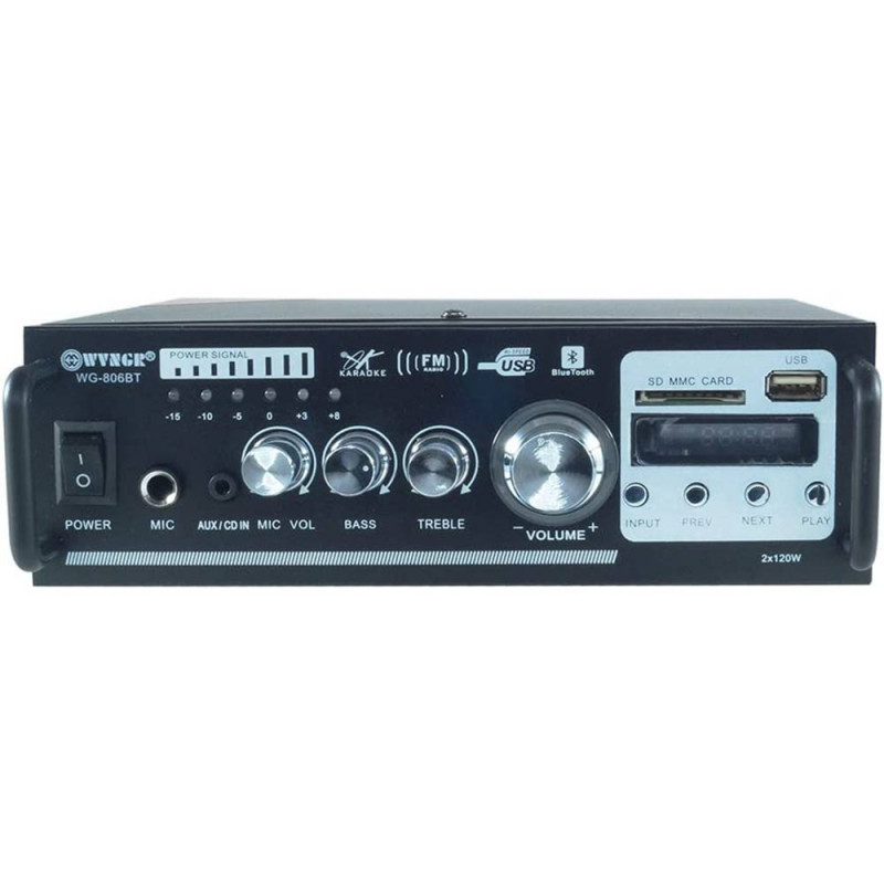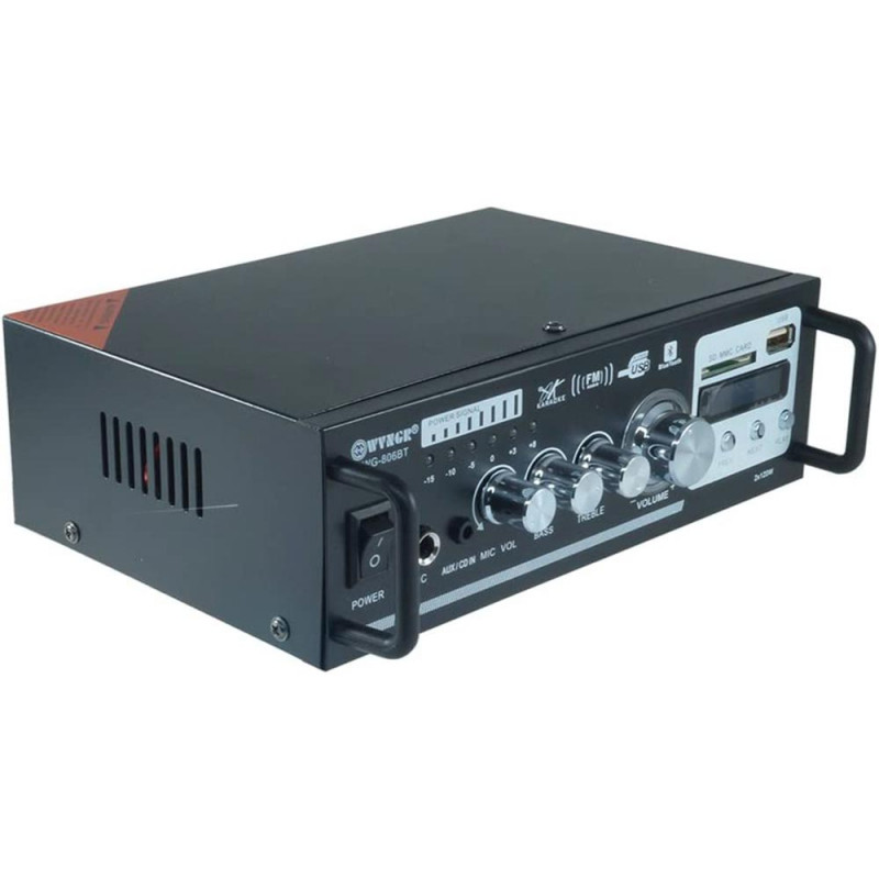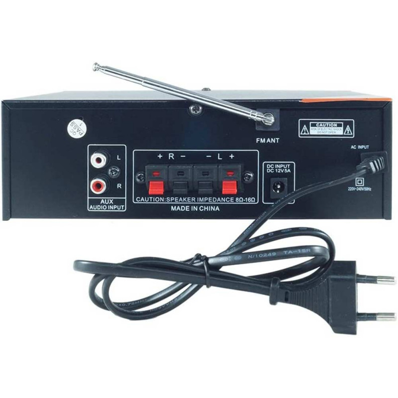 Amplificatore audio stereo con ingresso usb e sd card e funzione bluetooth per poter ascoltare la tua musica preferita oppure potete impostarlo sulla frequenza radio che adorate. Piccolo e compatto, è possibile posizionarlo ovunque senza occupare troppo spazio, garantendo comunque una qualità migliore del suono ed inoltre è possibile gestirlo a distanza grazie al telecomando incluso.