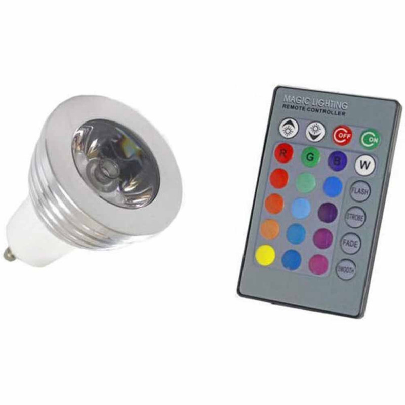 Fantastico faretto RGB con attacco GU10 220V composto da 1 led ultra luminoso da 3W.