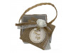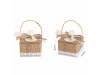 Raffinata e innovativa scatolina porta confetti in plastica con coperchio in cartone interamente rivestita in juta con un piccolo manico che simula un cestino. Decorata con un fiore, nastro bianco,, un ciondolo perla e un adesivo con la scritta sweet gift.