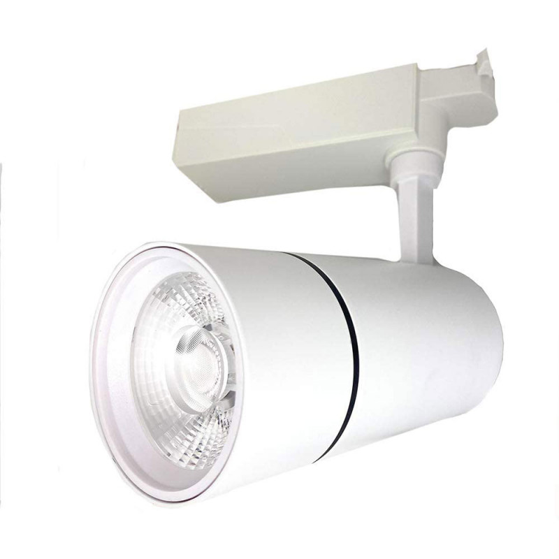 Faretto da binario da soffitto per illuminare vetrine, esposizioni, palchi e tanto altro. Dal design moderno è fondamentale per abbellire ed illuminare grandi ambienti. Il faretto viene inserito nell' apposita staffa con aggancio e sistema di bloccaggio manuale. Può essere ruotato e posizionato nel modo in cui si desidera. Potenza 30 watt- Angolo di illuminazione: 30° circa - Flusso luminoso: 2700lm Grandi Kelvin: Luce fredda 6500k calda 3000k naturale 4000k Dimensione: Lunghezza faretto 16,5 cm-Lunghezza totale compreso attacco 21 cm Alimentazione 100-240v Vita media: 30000h Colore struttura: Bianco