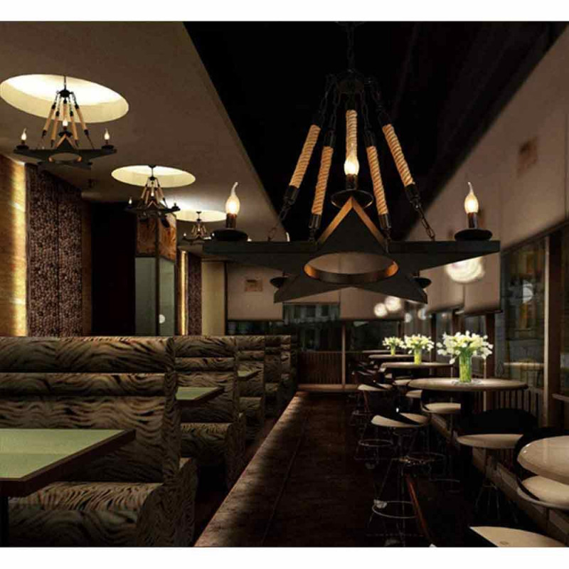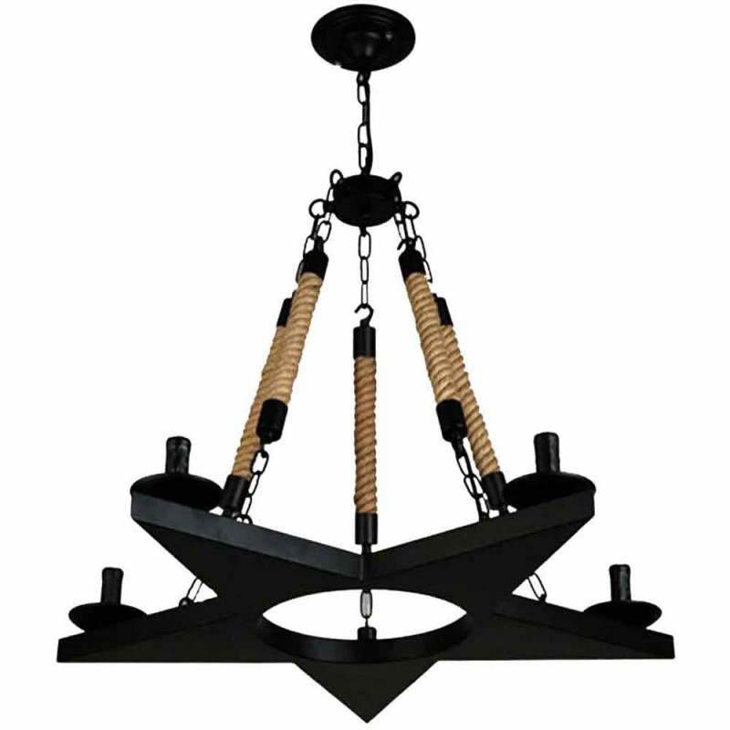 Lampadario con base a stella dal design rustico con corda in canapa e metallo perfetto per arredare casa con originalità. Perfetto per casa, tavernette, bar, pub e ristoranti.