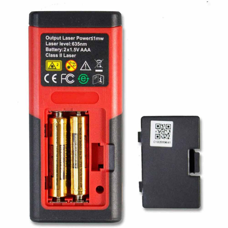 Metro laser con livella 2 in 1 per una perfetta misurazione fino a 50 metri. Dotato di tasto per lettura del metraggio, addizione e sottrazione, calcolo di area-volume-triangolo, tasto di memorizzazione, data e unità di misura e tasto di accensione.