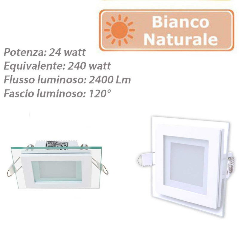 Pannello led ad incasso completo di driver composto da una struttura con cornice in vetro trasparente, per montaggio a soffitto. Il prodotto è indicato per controsoffittature ma anche per illuminare garage sotterranei, sottopassi, parcheggi, uffici, supermercati ed in generale ampie superfici commerciali e industriali. Completo di led driver e molle per il bloccaggio a soffitto.