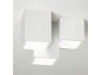 Elegante plafoniera in gesso dal design moderno di colore bianco adatta per installazioni a soffitto dotata di 3 diffusori quadrati con portalampada GU10 adatta per l'illuminazione interna di salotti, uffici, cucine moderne, soggiorni, per l'illuminazione di negozi, attività commerciali, ristoranti per dare un tocco di eleganza ai propri ambienti interni. La struttura della lampada è realizzata in gesso bianco e può essere dipinta con colori specifici secondo l'arredamento. Ha una forma di quadrati sfalsati ed emette una luce diffusa e concentrata a seconda del grado del tipo di lampada inserita.