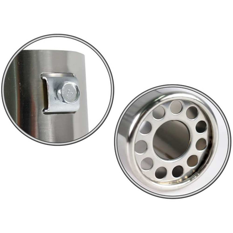 Pratico silenziatore per marmitta realizzato in acciaio inossidabile resistente nel tempo, è ideale per limitare i rumori provocati dalla marmitta e donare un tocco estetico in più alla vostra macchina. Il silenziatore è dotato di due viti per adattarlo alla marmitta della vostra auto, stringendole a allargandole.