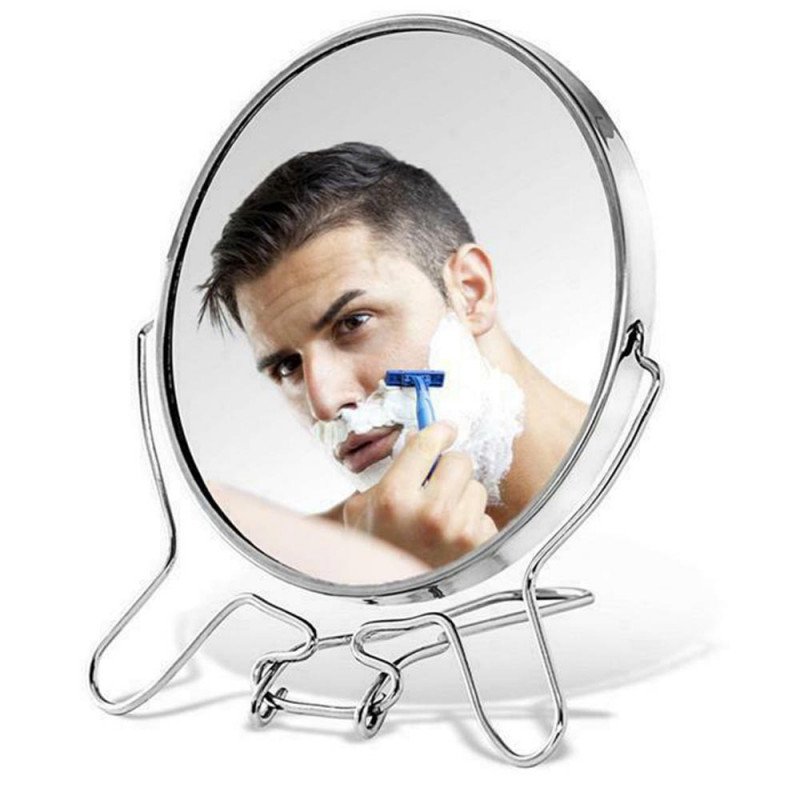 Specchio cosmetico rotondo in acciaio cromato, dotato di 2 specchi di cui uno con lo zoom per essere ancora più precisi. Ruotabile a 180°, può essere tenuto in mano oppure poggiato su qualsiasi superfice grazie alla comoda base di appoggio .