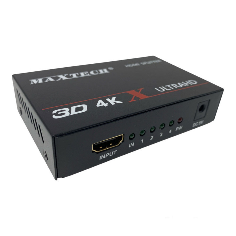 Splitter HDMI che permette di inviare contemporaneamente a 4 dispositivi come TV, PROIETTORE, MONITOR, il segnale di un dispositivo di riproduzione HDMI. Supporta il segnale in 3D, 4K e 1080P ad un altissima risoluzione.