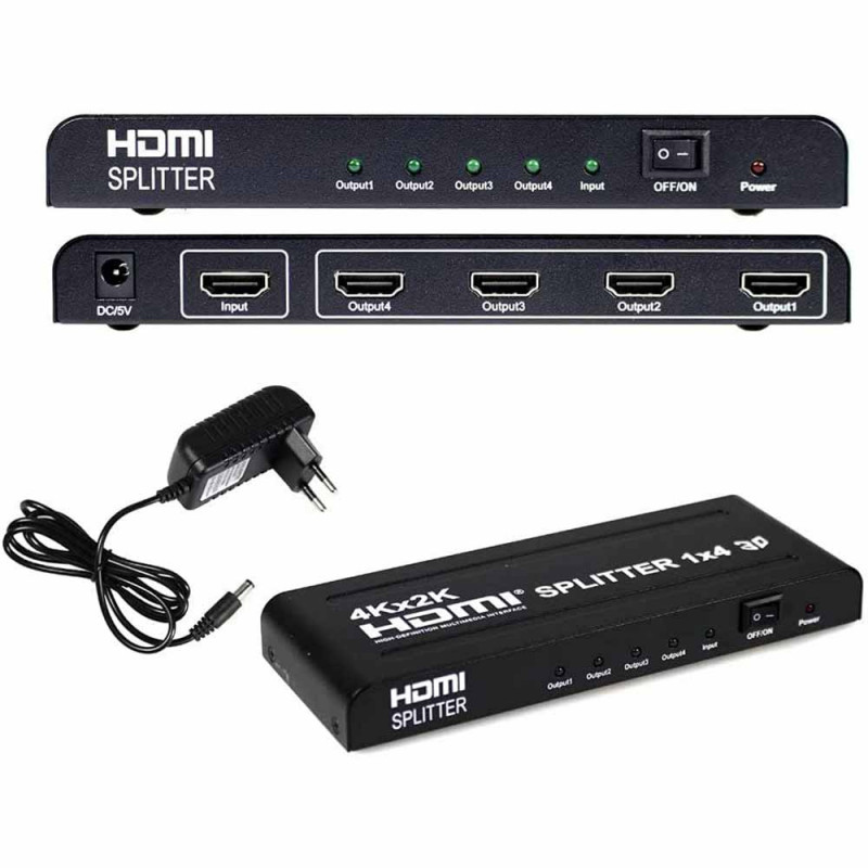 Splitter HDMI full HD 1.4 che permette di collegare una fonte video come dvr, ps3, pc smistando il segnale video su 4 tv/monitor differenti ad una alta risoluzione 1080P 3D. -