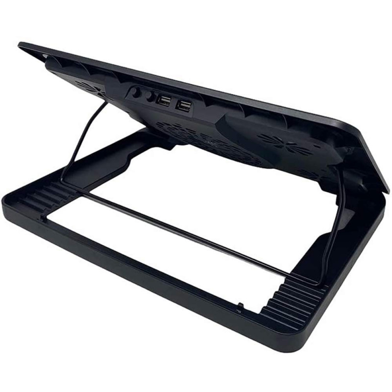 Supporto per notebook studiato per chi utilizza pc portatili molte ore al giorno! Agevola il raffreddamento del notebook offrendogli maggiore capacità di ventilazione.Dotato di ventole alimentabili tramite usb e in più integrano un HUB con 2 porte usb per permettono il collegamento di periferiche esterne.La particolarità di questo prodotto è data dall’assoluta libertà di scegliere la posizione più comoda, infatti permette 3 diverse inclinazioni e grazie ai 2 supporti antiscivolo anche nella massima dell’inclinazione il pc resterà bloccato.