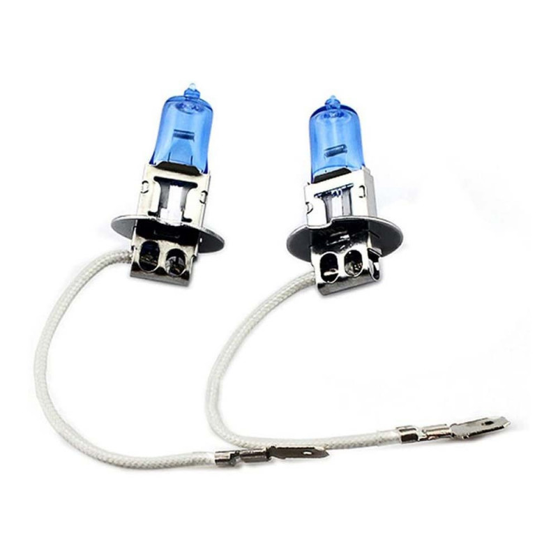 Coppia di lampadine alogene per auto con attacco H3. Producono un fascio di luce luminosissimo con una gradazione intorno ai 5000° kelvin , simile a quella delle lampade xenon.