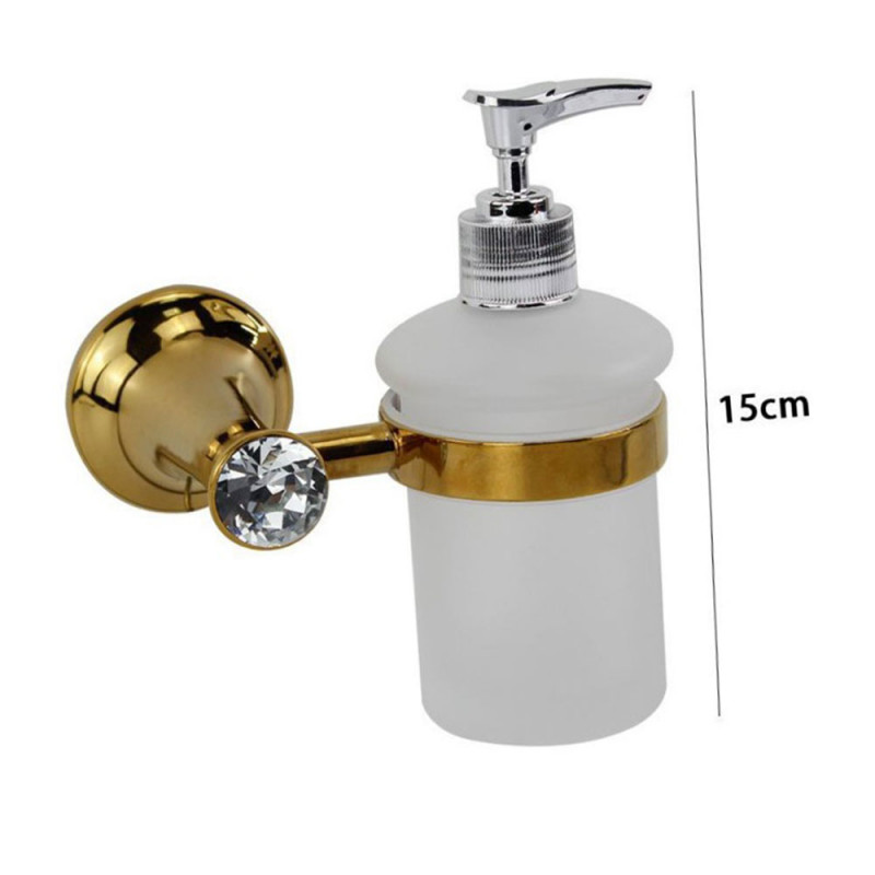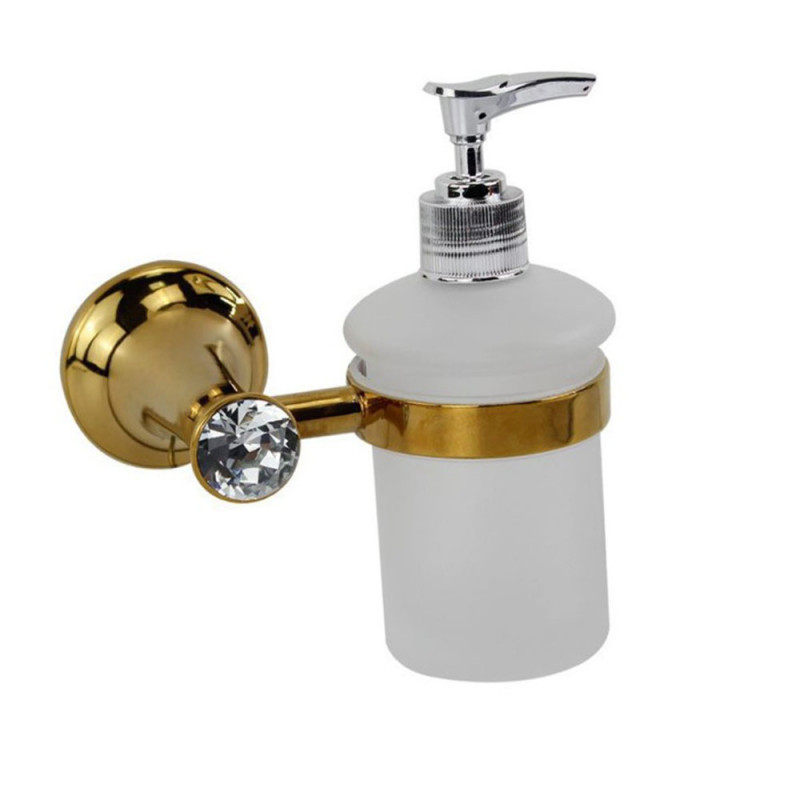 Dispenser per sapone liquido in acciaio e vetro satinato. Dal design elegante è ideale sia per ambienti classici che moderno. Il porta sapone è impreziosito da un punto luce in cristallo acrilico.