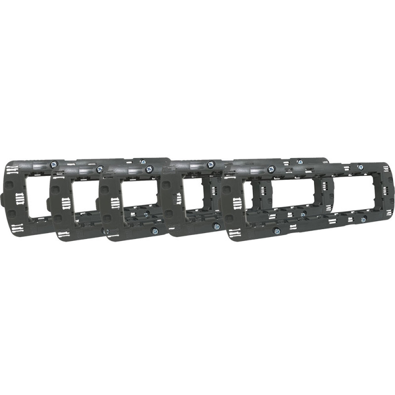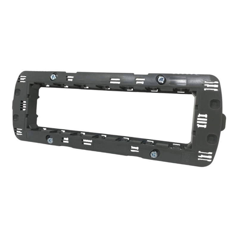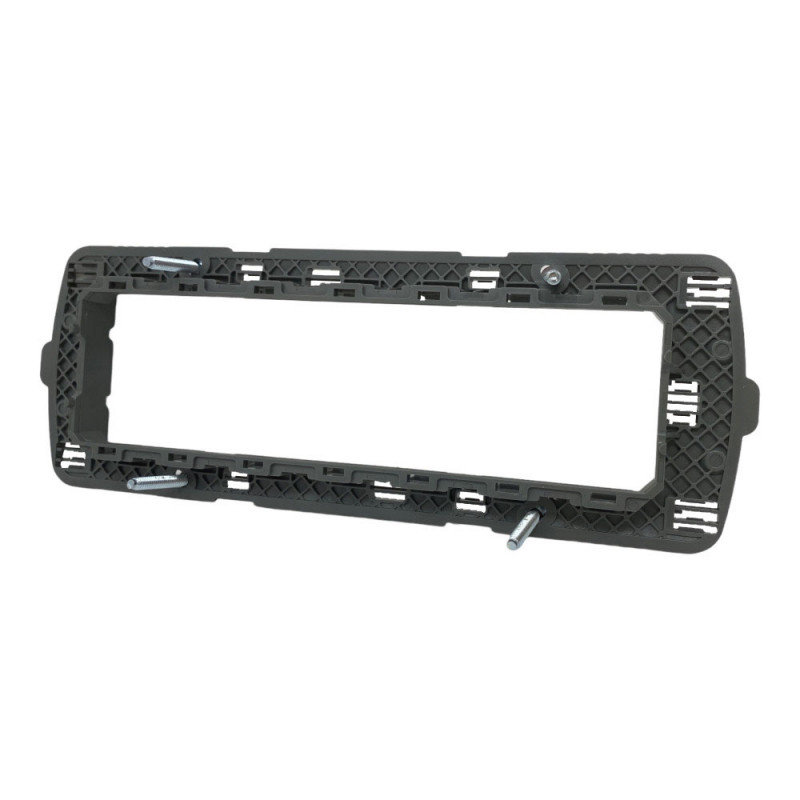 Supporti per placche compatibile Living Light/International a 7 posti. Supporto copri interruttore in plastica resistente che permette il montaggio fino a 7 interruttori, prese, pulsanti...in maniera rapida e sicura con aggancio a vite.