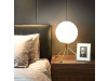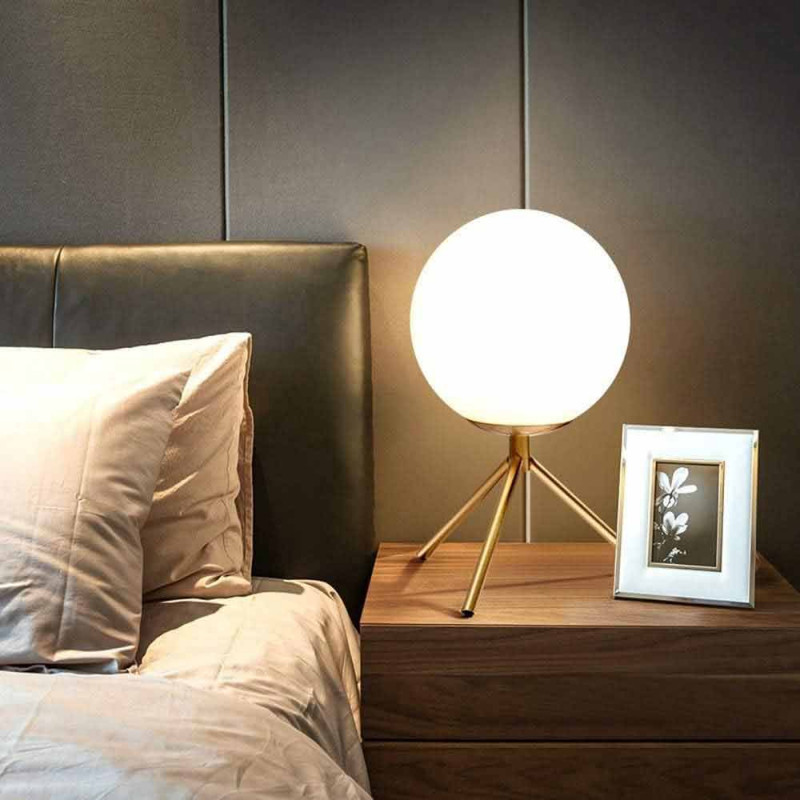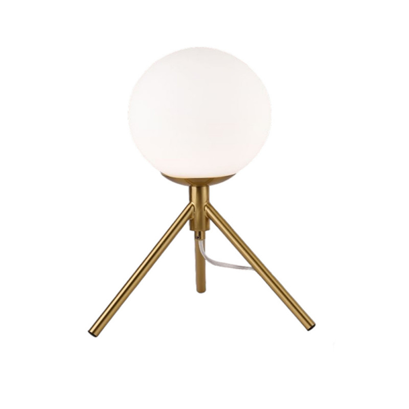 Lampada da terra dal design minimalista dalle linee morbide e dettagli in bronzo. La lampada è composta da un paralume sferico in vetro opalino bianco che unito alla base a treppiede crea un design originale e un'illuminazione ottimale per ogni ambiente. Il colore dorato della sua struttura le conferisce un autentico tocco chic e di tendenza. La lampada viene fornito senza lampadina, la sfera va utilizzata la lampadina con attacco G9.