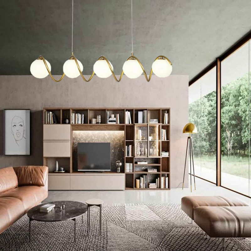 La combinazione della struttura ondulata in bronzo e del paralume in vetro opaco rende questo lampadario a sospensione davvero eccezionale. Questa lampada a 5 luci aggiunge un fascino ultra moderno al tuo spazio. Ideale per Illumina la tua isola della cucina, il tavolo della sala da pranzo, il soggiorno e altro ancora con la luce ambientale. La lampada viene fornito senza lampadina, per ogni sfera va utilizzata la lampadina con attacco G9