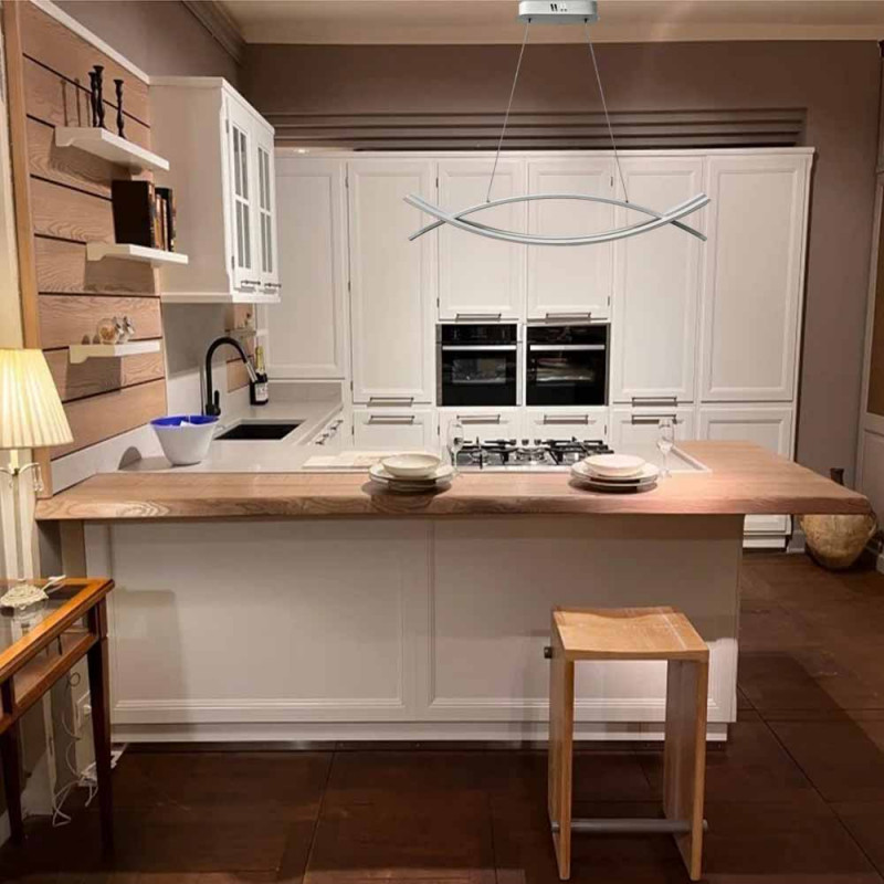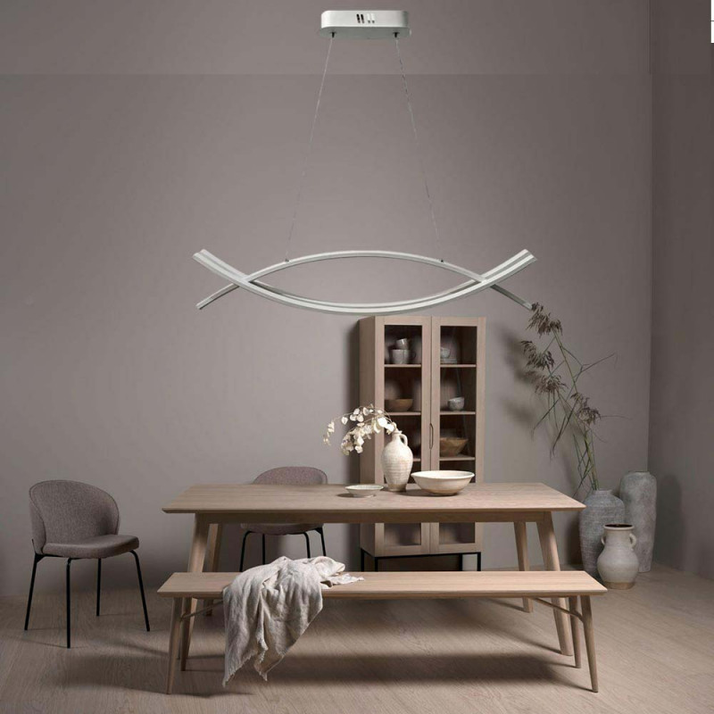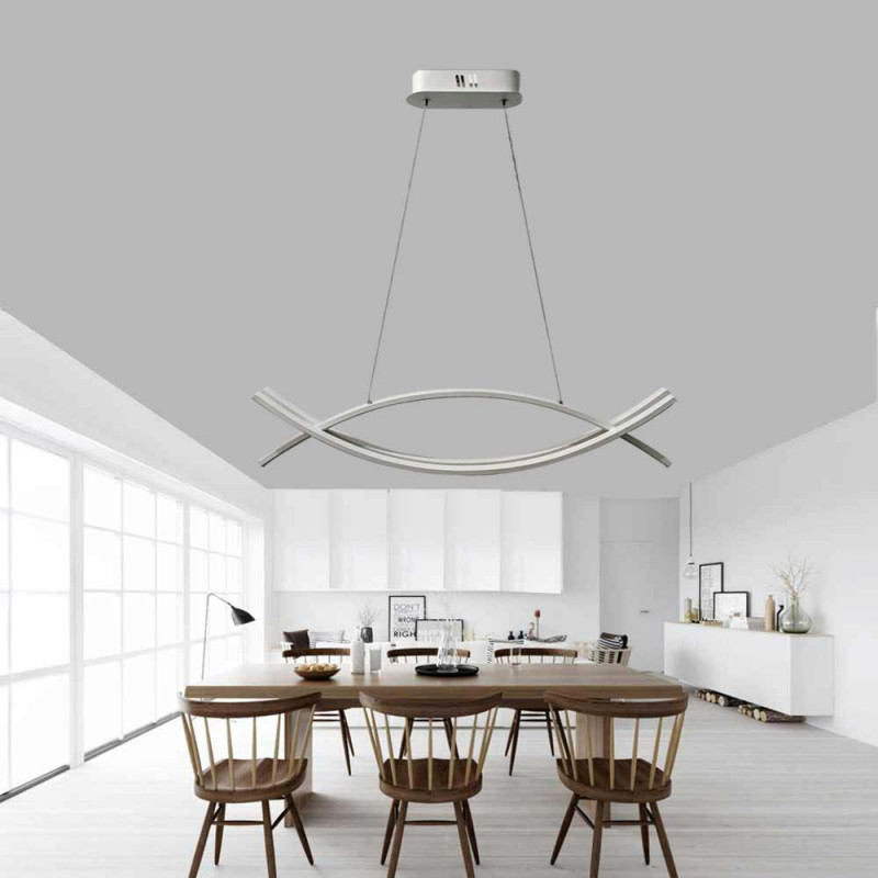 Lampadario da soffitto a led bianco dal design ultramoderno caratterizzato da morbide curve che regalano forme originali che incantano la vista e arredano ogni ambiente con eleganza e stile. I moduli LED integrati di questa lampada a sospensione producono una piacevole luce. Se necessario, è possibile regolare la lunghezza delle corde
