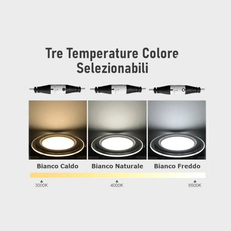 Pannello a led da incasso composto da una struttura con cornice in vetro trasparente. Il pannello addotta la tecnologia cct, quindi è possibile cambiare la colorazione della luce è possibile sceglierla in base a come si posiziona il connettore del pannello nel driver. Sul connettore del driver troverete specificate le varie colorazioni, 3000k, 6500K e naturale 4000K se posizionato centralmente, in base a come si inserisce nel pannello il led cambia colore e resta quello sempre. Con un solo pannello potete scegliere tutte le colorazioni di luce che più vi piacciono.