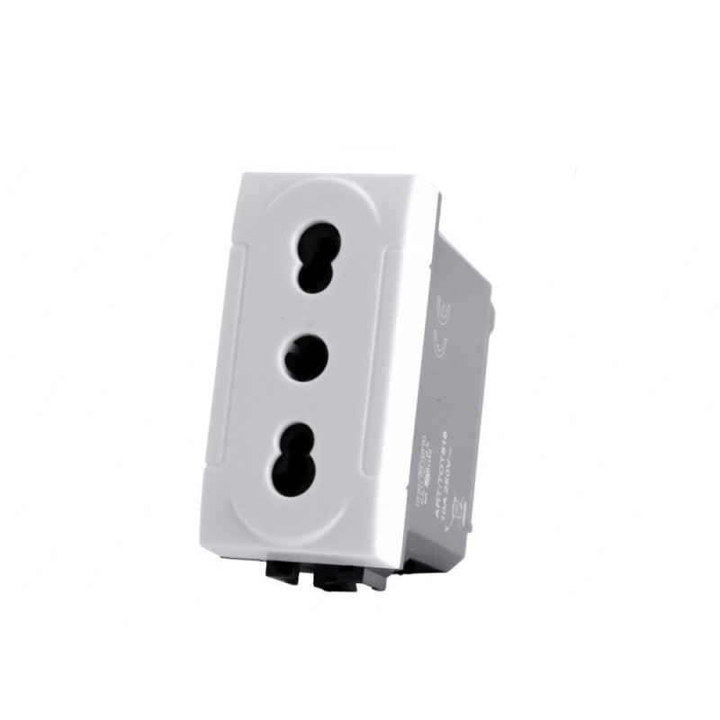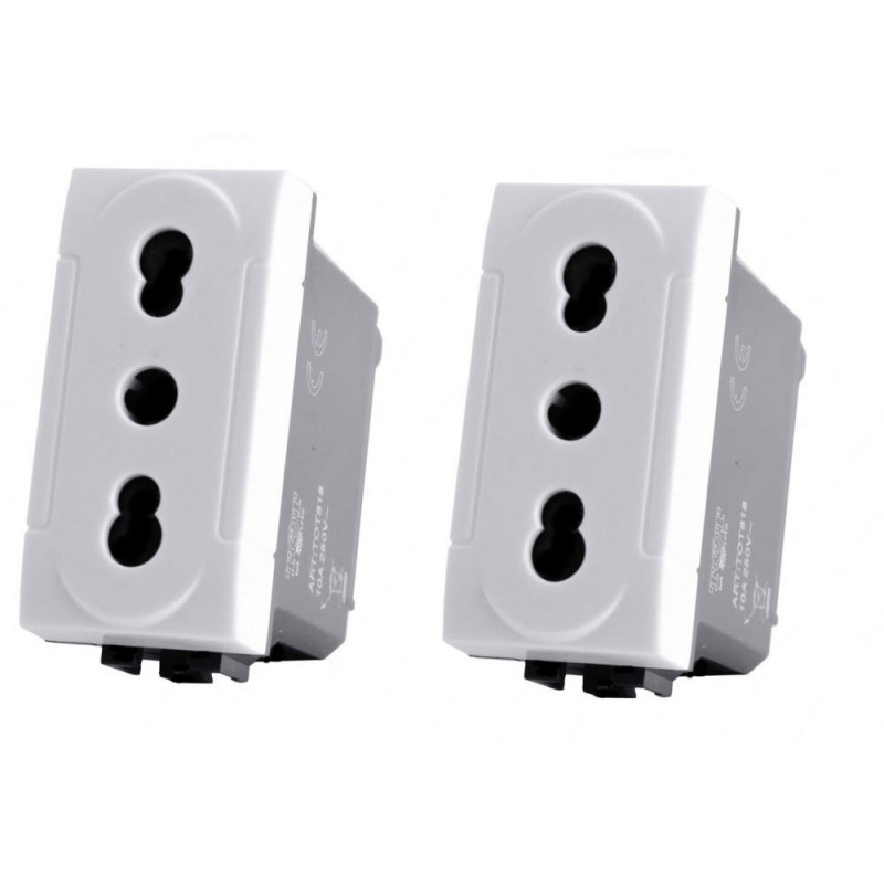 Presa bivalente o bipasso standard Italia 2P+T. È un mix tra due prese ottima e multifunzionale consente di inserire sia spine da 10A (spina piccola) che spine da 16A (spina grande). È dotata di alveoli schermati dove collegare la maggior parte di utilizzatori come forno, televisione, multi prese, ecc.